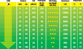 - Optimal levels of UVB, UVA, visual light and heat in one bulb!