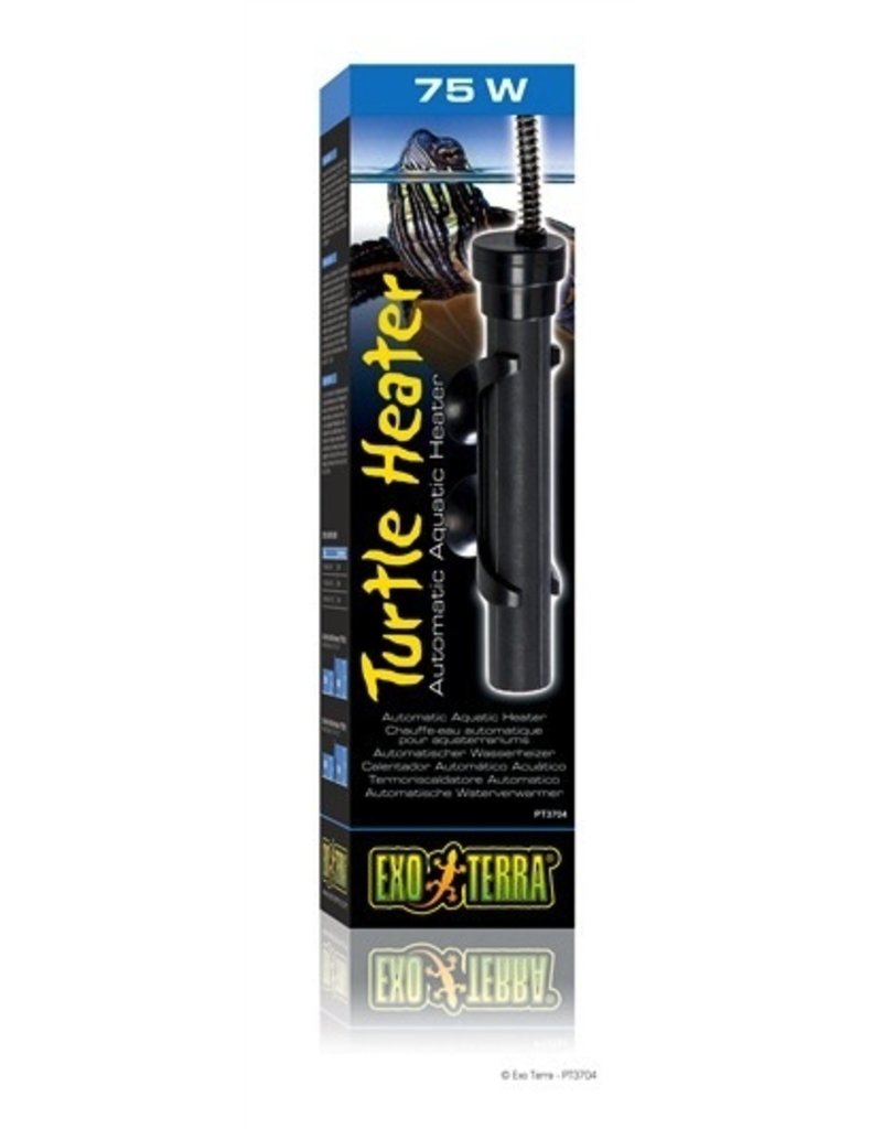 The Exo Terra Turtle Heater maintains an ideal water temperature (around 25°C or 78°F) for aquatic turtles and most other aquatic reptiles and amphibians. The high-impact plastic casing and the stainless steel power cord protector keeps aquatic reptiles and amphibians safe. Included is a mounting bracket with two oversized suction cups for easy mounting in any aquatic habitat setup. Can heat up to 100 litres or 30 gallons.