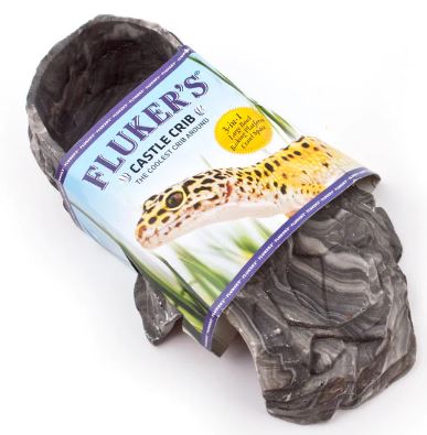 Treat your pet like royalty with Fluker's Castle Crib Reptile Hideout! It creatively combines a basking platform, crawl space and bowl into one convenient platform. Crafted with heavy-duty materials, this kingly crib is virtually unmovable in your terrarium, ensuring safety and comfort. Perfect for your smaller pet, this palace is easy to clean and disinfect and makes a royally fun hideaway for your small reptiles, amphibians, hermit crabs and arachnids. This is also great for use with tortoises, terrestrial turtles, aquatic amphibians, terrestrial amphibians, invertebrates, lizards, and snakes.