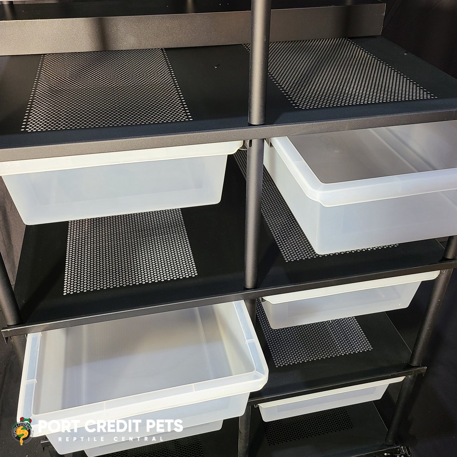 A unique style rack for reptiles that need the benefits of additional lite or heat from top sources. This rack offers loads of space to apply the optional light units (R104REF) or your own products of choice.