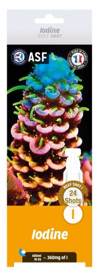 Soft corals are particularly sensitive to iodide depletion and will exhibit declining growth and eventual death if iodide is not replenished. Potassium Iodide Reef Shot safely replaces important iodide lost in the captive environment. It is beneficial to macroalgae, coralline and calcareous algae, fish, hard corals and soft corals. Iodide is depleted from aquariums through utilization by plants and animals, protein skimming and ozonisation.